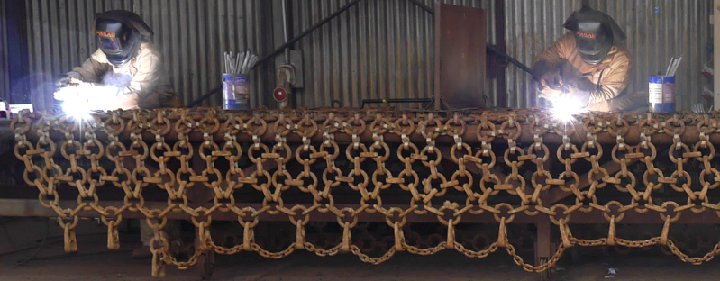Recuperamos la base de los eslabones desgastados a su medida original con una aleación de alto contenido de Cromo-Carbono resistente al desgaste extremo, material especialmente utilizado en piezas sometidas a fuertes impactos y abrasividad. Se recuperan además anillos logrando un ahorro cuantificable importante de partes y piezas.