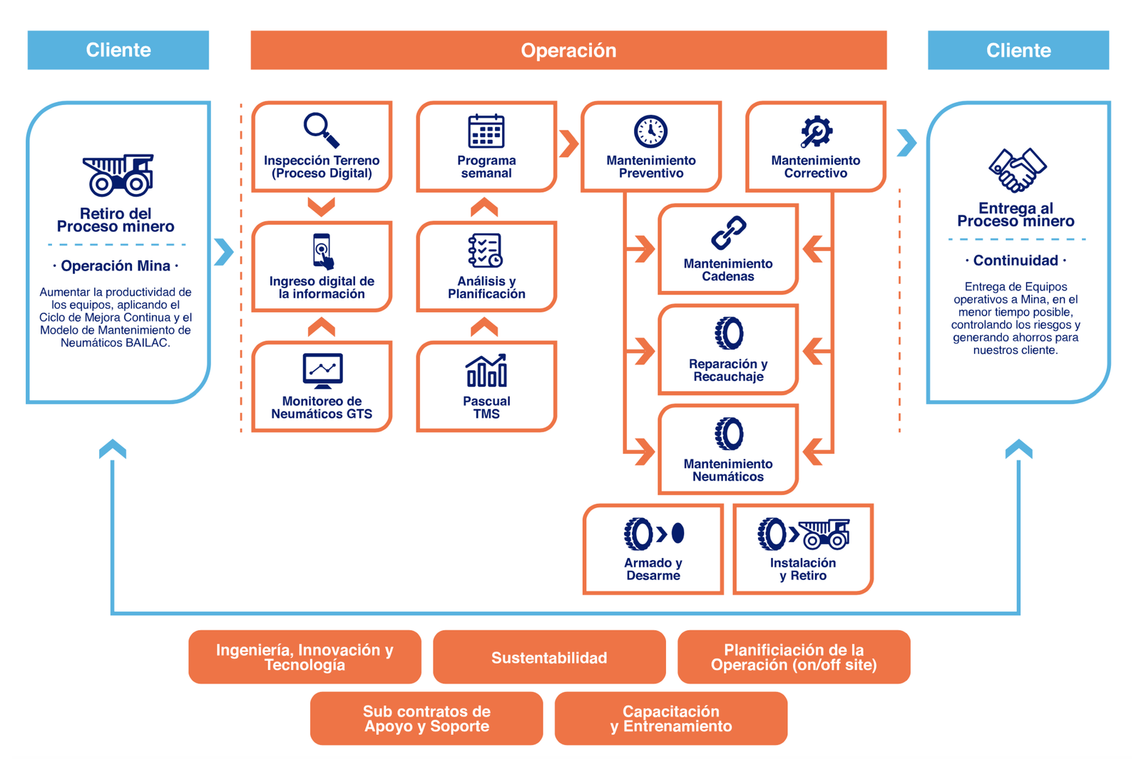 Bailac con más de tres décadas prestando servicios integrales de mantenimiento y control de neumáticos en faenas mineras y sus casi cien años de experiencia en el rubro, ha impregnado todo su ADN y “Know How”. Los expertos en neumáticos, son formados en terreno donde el estricto cumplimiento de nuestros programas de capacitación aseguran cumplir con los requerimientos exigidos por nuestros clientes y los altos estándares en seguridad de la minería.